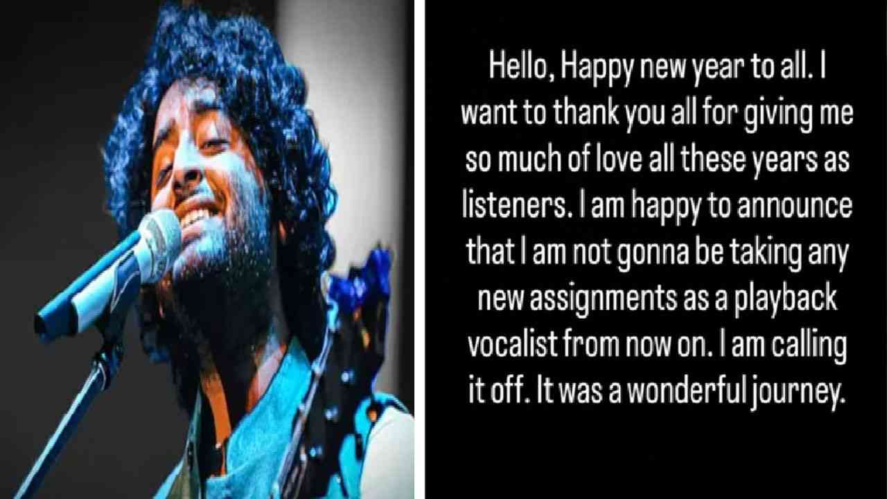 ਅਰਿਜੀਤ ਸਿੰਘ ਨੇ ਇੱਕ ਪੋਸਟ ਇੰਸਟਾਗ੍ਰਾਮ ਅਕਾਊਂਟ ‘ਤੇ ਸਾਂਝੀ ਕੀਤੀ ਹੈ। ਇਸ ਪੋਸਟ ਨੂੰ ਸ਼ੇਅਰ ਕਰਦੇ ਹੋਏ ਉਨ੍ਹਾਂ ਨੇ ਲਿਖਿਆ “ਹੈਲੋ ਤੁਹਾਨੂੰ ਸਭ ਨੂੰ ਨਵੇਂ ਸਾਲ ਦੀਆਂ ਵਧਾਈਆਂ। ਏਨੇ ਸਾਲਾਂ ਤੋਂ ਮੈਨੂੰ ਸਰੋਤਿਆਂ ਦਾ ਪਿਆਰ ਦੇਣ ਦੇ ਲਈ ਤੁਹਾਡਾ ਸਾਰਿਆਂ ਦਾ ਧੰਨਵਾਦ। ਮੈਨੂੰ ਇਹ ਐਲਾਨ ਕਰਦੇ ਹੋਏ ਬੇਹੱਦ ਖੁਸ਼ੀ ਹੋ ਰਹੀ ਹੈ ਕਿ ਹੁਣ ਤੋਂ ਮੈਂ ਪਲੇਅਬੈਕ ਗਾਇਕ ਦੇ ਤੌਰ ‘ਤੇ ਕੰਮ ਨਹੀਂ ਕਰਾਂਗਾ।ਮੈਂ ਇਸ ਪ੍ਰੋਫੈਸ਼ਨ ਨੂੰ ਅਲਵਿਦਾ ਕਹਿ ਰਿਹਾ ਹਾਂ”।