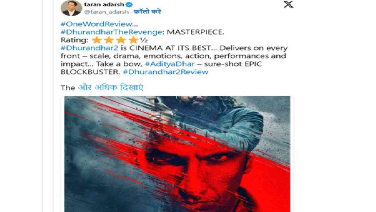 ਦੱਸ ਦਈਏ ਕਿ ਧਰੁੰਧਰ-2 ਦੇ ਪ੍ਰਵਿਊਜ਼ ਸ਼ੋਅ ਅਠਾਰਾਂ ਮਾਰਚ ਨੂੰ ਹੋਏ ਸਨ ਅਤੇ ਇਨ੍ਹਾਂ ‘ਚ ਹੀ ਰਣਵੀਰ ਸਿੰਘ ਦੀ ਫ਼ਿਲਮ ਨੇ ਧਮਾਕੇਦਾਰ ਕਲੈਕਸ਼ਨ ਕੀਤਾ ਹੈ।ਟ੍ਰੇਡ ਐਨਾਲਿਸਟ ਤਰੁਣ ਆਦਰਸ਼ ਨੇ ਫ਼ਿਲਮ ਦੀ ਰੱਜ ਕੇ ਤਾਰੀਫ ਕੀਤੀ ਹੈ। ਉਨ੍ਹਾਂ ਨੇ ਇਸ ਫ਼ਿਲਮ ਨੂੰ ਮਾਸਟਰ ਪੀਸ ਦੱਸਿਆ ਹੈ। ਇਸ ਦੇ ਨਾਲ ਆਦਿਤਿਆ ਧਰ ਦੀ ਡਾਇਰੈਕਸ਼ਨ ਤੇ ਰਣਵੀਰ ਸਿੰਘ ਦੀ ਅਦਾਕਾਰੀ ਦੀ ਵੀ ਸ਼ਲਾਘਾ ਕੀਤਾ ਹੈ ਅਤੇ ਇਸ ਫ਼ਿਲਮ ਨੂੰ ਸਾਢੇ ਚਾਰ ਦੀ ਰੇਟਿੰਗ ਦਿੱਤੀ ਹੈ।