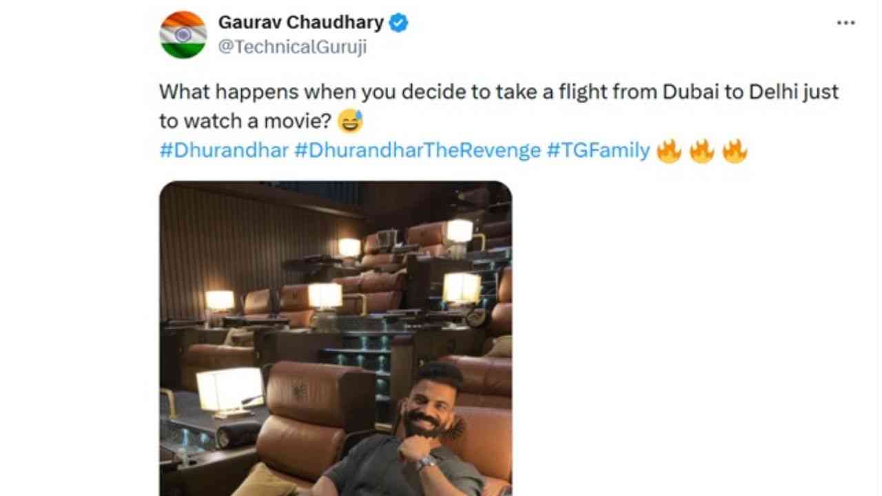 ‘ਧਰੁੰਧਰ-2’ ਦਾ ਜਾਦੂ ਲੋਕਾਂ ਦੇ ਸਿਰ ਚੜ੍ਹ ਕੇ ਬੋਲ ਰਿਹਾ ਹੈ।ਯੂ-ਟਿਊਬਰ ਟੈਕਨੀਕਲ ਗੁਰੁ ਜੀ ਗੌਰਵ ਚੌਧਰੀ ਫ਼ਿਲਮ ਦਾ ਪੇਡ ਪ੍ਰਵਿਊ ਸ਼ੋਅ ਵੇਖਣ ਦੇ ਲਈ ਦੁਬਈ ਤੋਂ ਦਿੱਲੀ ਪਹੁੰਚੇ ਹਨ।ਉਨ੍ਹਾਂ ਨੇ ਆਪਣੇ ਇੰਸਟਾਗ੍ਰਾਮ ਅਕਾਊਂਟ ‘ਤੇ ਵੀਡੀਓ ਸਾਂਝਾ ਕਰਦੇ ਹੋਏ ਇਸ ਦੀ ਜਾਣਕਾਰੀ ਦਿੱਤੀ ਹੈ।