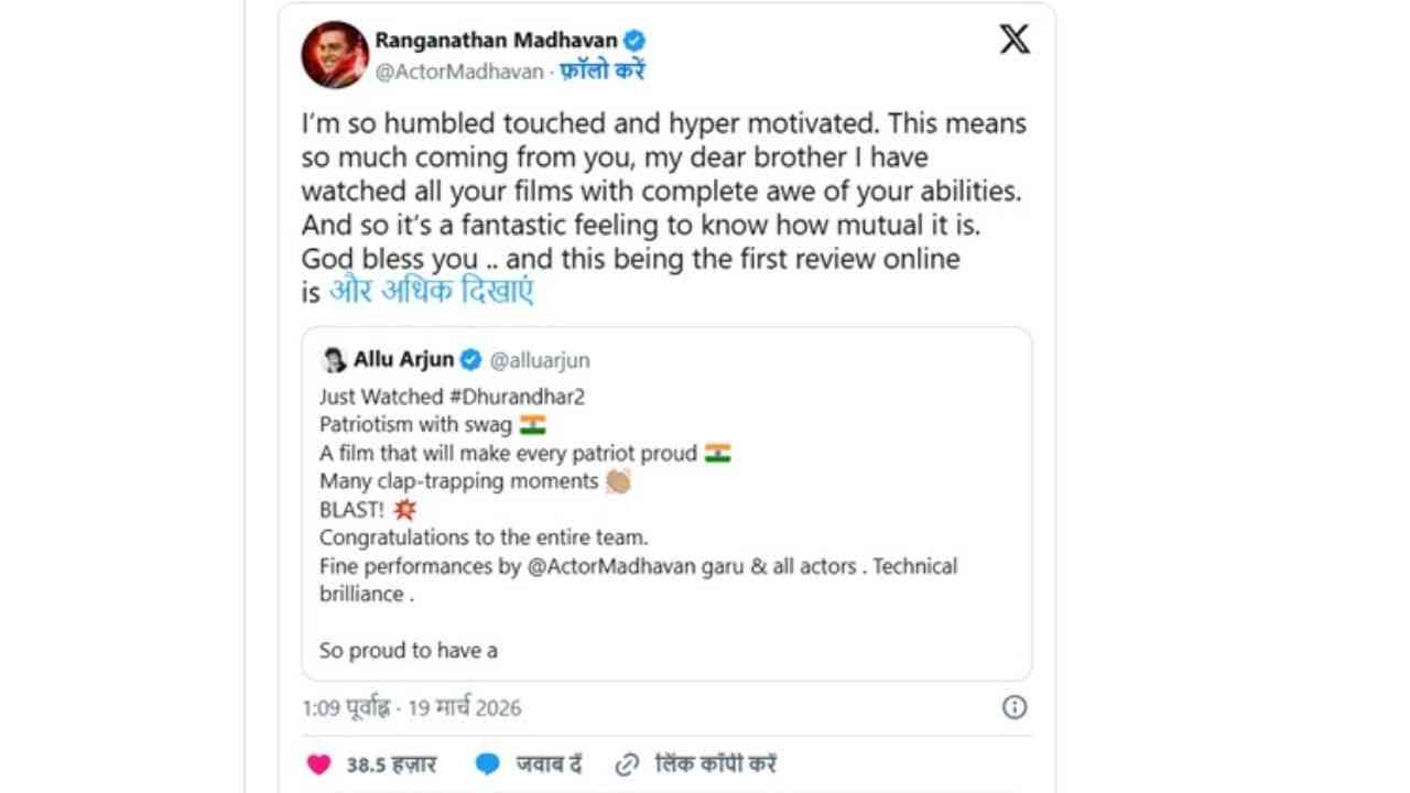 ਅੱਲੂ ਅਰਜੁਨ ਨੇ ‘ਧਰੁੰਧਰ -2’ ਨੂੰ ਵੇਖਣ ਤੋਂ ਬਾਅਦ ਆਰ ਮਾਧਵਨ ਸਣੇ ਬਾਕੀ ਕਲਾਕਾਰਾਂ ਦੀ ਅਦਾਕਾਰੀ ਦੀ ਸ਼ਲਾਘਾ ਕੀਤੀ ਹੈ।