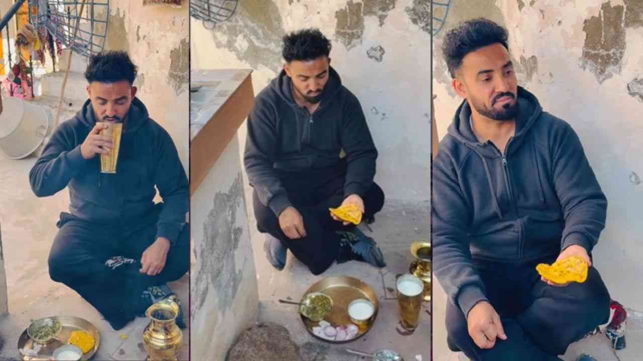 ਰੇਸ਼ਮ ਸਿੰਘ ਅਨਮੋਲ ਸੋਸ਼ਲ ਮੀਡੀਆ ਤੇ ਸਰਗਰਮ ਰਹਿੰਦੇ ਹਨ ਅਤੇ ਅਕਸਰ ਆਪਣੀਆਂ ਵੀਡੀਓਜ਼ ਤੇ ਤਸਵੀਰਾਂ ਸਾਂਝੀਆ ਕਰਦੇ ਰਹਿੰਦੇ ਹਨ । ਹੁਣ ਉਨ੍ਹਾਂ ਨੇ ਆਪਣਾ ਇੱਕ ਵੀਡੀਓ ਸਾਂਝਾ ਕੀਤਾ ਹੈ। ਜਿਸ ‘ਚ ਉਹ ਸਾਗ ਤੇ ਮੱਕੀ ਦੀ ਰੋਟੀ ਖਾਂਦੇ ਹੋਏ ਨਜ਼ਰ ਆ ਰਹੇ ਹਨ । ਵੀਡੀਓ ‘ਚ ਤੁਸੀਂ ਵੇਖ ਸਕਦੇ ਹੋ ਕਿ ਹਾਰੇ ‘ਚ ਬਣਿਆ ਸਾਗ ਮੱਕੀ ਦੀ ਰੋਟੀ ਤੇ ਲੱਸੀ ਦਾ ਅਨੰਦ ਮਾਣਦੇ ਹੋਏ ਉਹ ਦਿਖਾਈ ਦੇ ਰਹੇ ਹਨ ।