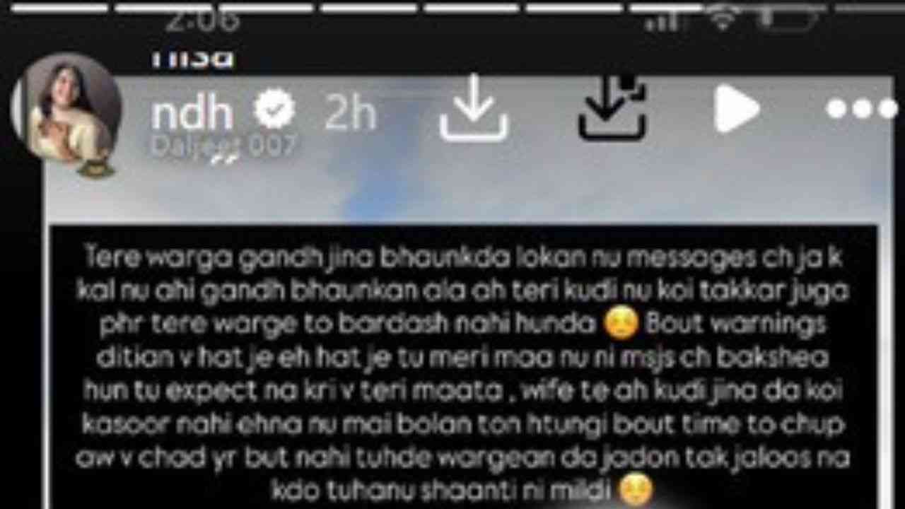 ਦਲਜੀਤ ਨਾਮ ਦਾ ਇਹ ਸ਼ਖਸ ਬਾਣੀ ਸੰਧੂ ਨੂੰ ਪ੍ਰੇਸ਼ਾਨ ਕਰਦਾ ਸੀ ਜਿਸ ਤੋਂ ਬਾਅਦ ਗਾਇਕਾ ਨੇ ਆਪਣੀ ਇੰਸਟਾਗ੍ਰਾਮ ਸਟੋਰੀ ‘ਚ ਲਿਖਿਆ ‘ਤੇਰੇ ਵਰਗਾ ਗੰਦ ਜਿੰਨਾ ਭੌਂਕਦਾ ਹੈ ਲੋਕਾਂ ਨੂੰ ਮੈਸੇਜ ‘ਚ ਜਾ ਕੇ ।ਕੱਲ੍ਹ ਨੂੰ ਆਹੀ ਕੁਝ ਭੌਂਕਣ ਵਾਲਾ ਤੇਰੀ ਕੁੜੀ ਨੂੰ ਵੀ ਟੱਕਰ ਜਾਉ।ਫਿਰ ਤੇਰੇ ਵਰਗੇ ਤੋਂ ਬਰਦਾਸ਼ਤ ਨਹੀਂ ਹੁੰਦਾ । ਬਹੁਤ ਵਾਰਨਿੰਗ ਦਿੱਤੀਆਂ ਪਰ ਤੂੰ ਹਟਿਆ ਨਹੀਂ ।ਬਾਣੀ ਸੰਧੂ ਨੇ ਇਸ ਪੋਸਟ ‘ਚ ਹੋਰ ਵੀ ਬੜੀਆਂ ਖਰੀਆਂ ਖੋਟੀਆਂ ਇਸ ਸ਼ਖਸ ਨੂੰ ਸੁਣਾਈਆਂ ਹਨ।