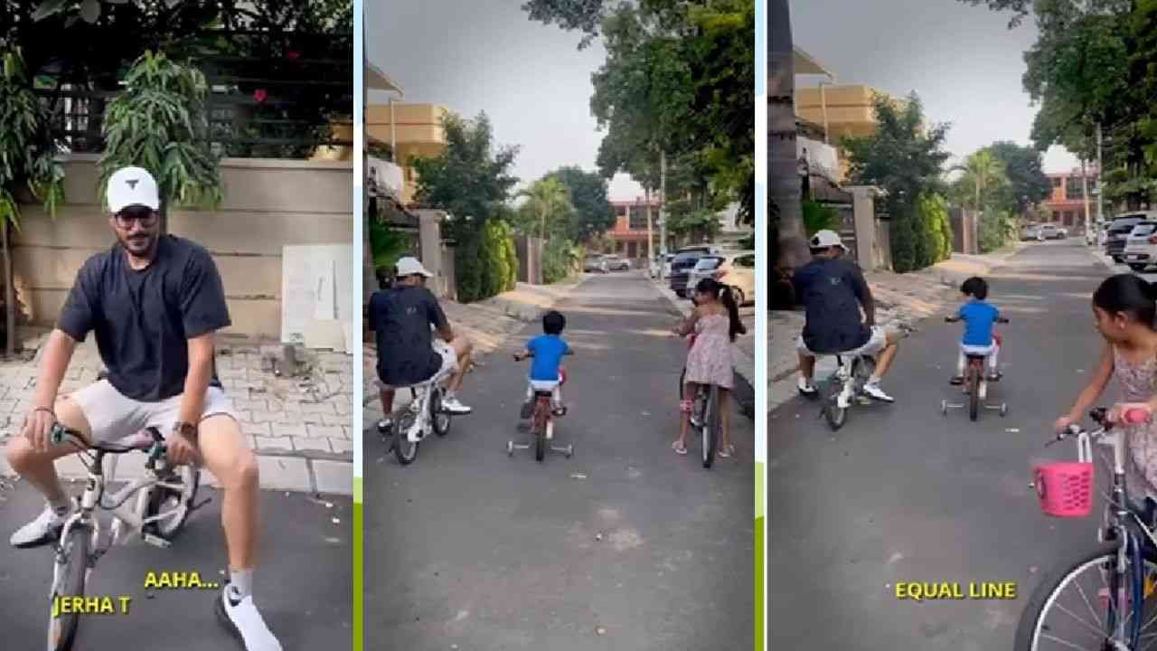 ਰਾਜਵੀਰ ਜਵੰਦਾ ਦਾ ਇੱਕ ਵੀਡੀਓ ਸੋਸ਼ਲ ਮੀਡੀਆ ਤੇ ਵਾਇਰਲ ਹੋ ਰਿਹਾ ਹੈ। ਜਿਸ ‘ਚ ਉਹ ਆਪਣੇ ਬੱਚਿਆਂ ਦੇ ਨਾਲ ਸਾਈਕਲਿੰਗ ਕਰਦਾ ਹੋਇਆ ਨਜ਼ਰ ਆ ਰਿਹਾ ਹੈ। ਮਰਹੂਮ ਗਾਇਕ ਦੇ ਇਸ ਵੀਡੀਓ ‘ਚ ਤੁਸੀਂ ਵੇਖ ਸਕਦੇ ਹੋ ਕਿ ਕਿਵੇਂ ਗਾਇਕ ਆਪਣੇ ਬੱਚਿਆਂ ਨਾਲ ਛੋਟੇ ਜਿਹੇ ਸਾਈਕਲ ਤੇ ਚੜ੍ਹ ਕੇ ਰੇਸ ਲਗਾ ਰਿਹਾ ਹੈ।