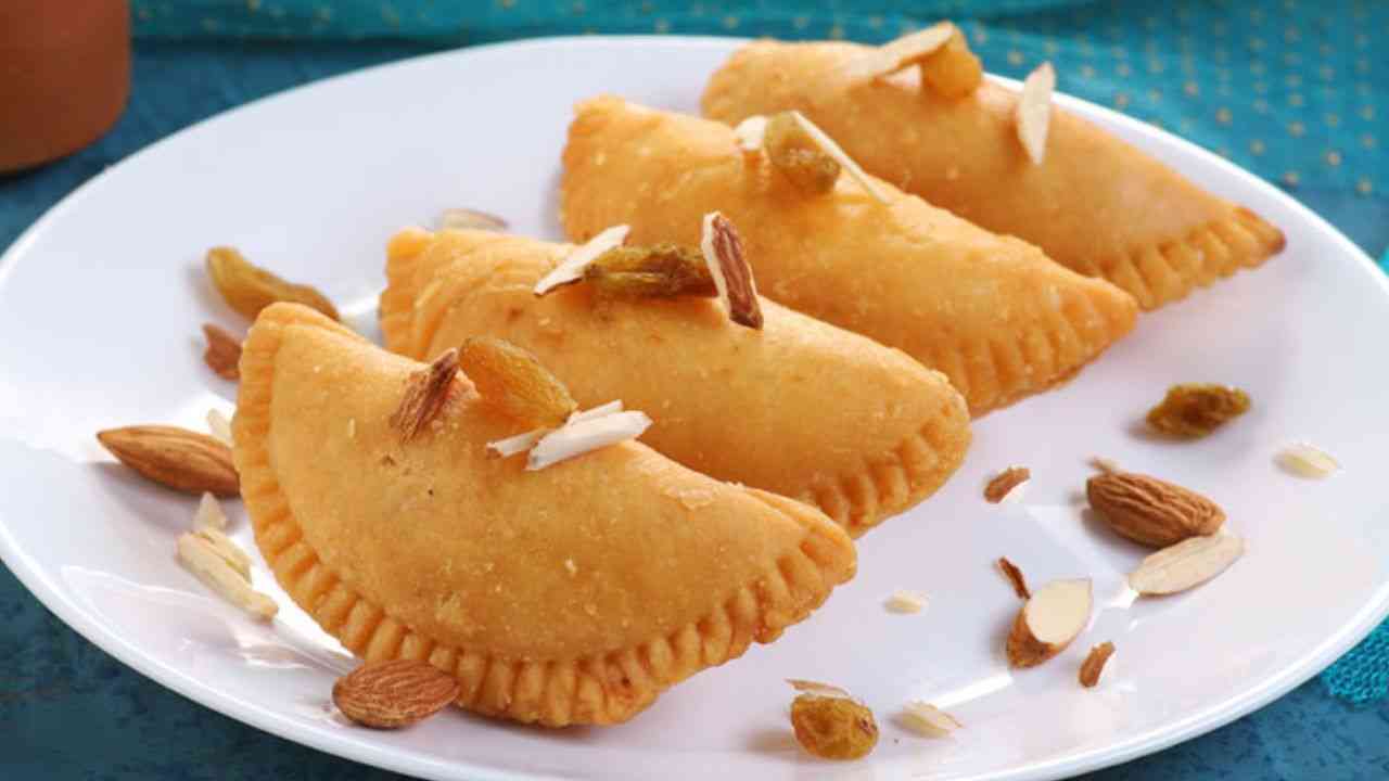 ਗੁਜੀਆ ਵੀ ਤੁਸੀਂ ਘਰ ‘ਚ ਹੀ ਬਣਾ ਸਕਦੇ ਹੋ । ਇਸ ਨੂੰ ਤਿਆਰ ਕਰਨ ਦੇ ਲਈ ਮੈਦੇ ਨੂੰ ਘਿਉ ‘ਚ ਗੁੰਨ ਲਓ ਅਤੇ ਫਿਰ ਕੁਝ ਦੇਰ ਦੇ ਲਈ ਢੱਕ ਕੇ ਰੱਖ ਦਿਓ ।ਸਟਫਿੰਗ ਦੇ ਲਈ ਖੋਏ ਨੂੰ ਥੋੜ੍ਹਾ ਭੁੰਨ ਲਓ। ਇਸ ‘ਚ ਪੀਸੀ ਹੋਈ ਚੀਨੀ,ਮੇਵੇ ਅਤੇ ਇਲਾਇਚੀ ਪਾਊਡਰ ਮਿਲਾਓ। ਮੈਦੇ ਦੇ ਛੋਟੇ ਛੋਟੇ ਪੇੜੇ ਬਣਾ ਕੇ ਸਟਫਿੰਗ ਭਰੋ ਅਤੇ ਕਿਨਾਰਿਆਂ ਨੂੰ ਚੰਗੀ ਤਰ੍ਹਾਂ ਮੋੜ ਕੇ ਬੰਦ ਕਰ ਦਿਓ। ਇਸ ਤੋਂ ਬਾਅਦ ਇਨ੍ਹਾਂ ਨੂੰ ਤਲ ਲਓ। ਤੁਹਾਡੀ ਗੁਜੀਆ ਤਿਆਰ ਹੈ।