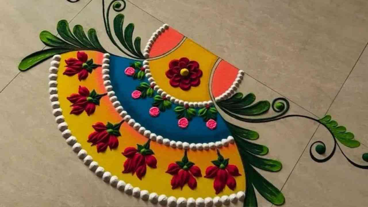 ਰੰਗਾਂ ਨਾਲ ਬਣਾਈ ਰੰਗੋਲੀ ਤਾਂ ਹਰ ਕਿਸੇ ਦਾ ਧਿਆਨ ਆਪਣੇ ਵੱਲ ਖਿੱਚਦੀ ਹੈ। ਇਸ ਤਰ੍ਹਾਂ ਦੀ ਰੰਗੋਲੀ ਲਈ ਤੁਸੀਂ ਲਾਲ, ਪੀਲੇ ਤੇ ਹੋਰ ਗੂੜ੍ਹੇ ਰੰਗਾਂ ਦਾ ਇਸਤੇਮਾਲ ਕਰ ਸਕਦੇ ਹੋ ।