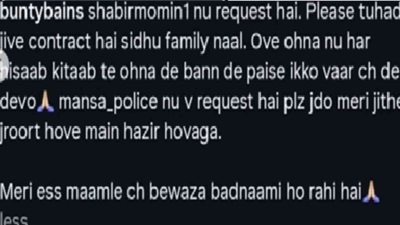 ਬੀਤੇ ਦਿਨ ਸਿੱਧੂ ਮੂਸੇਵਾਲਾ ਦੇ ਮਾਪਿਆਂ ਦੇ ਵੱਲੋਂ ਐੱਸਐੱਸਪੀ ਦਫ਼ਤਰ ਦੇ ਬਾਹਰ ਧਰਨਾ ਸ਼ੁਰੂ ਕਰ ਦਿੱਤਾ ਸੀ । ਜਿਸ ‘ਚ ਉਨ੍ਹਾਂ ਨੇ ਸਿੱਧੂ ਮੂਸੇਵਾਲਾ ਦੇ ਮਾਪਿਆਂ ਵੱਲੋਂ ਲਗਾਏ ਇਲਜ਼ਾਮਾਂ ‘ਤੇ ਜਵਾਬ ਦਿੱਤਾ ਹੈ। ਬੰਟੀ ਬੈਂਸ ਨੇ ਆਪਣੀ ਪੋਸਟ ‘ਚ ਕਿਹਾ ਹੈ ਕਿ ‘ਜੇਕਰ ਸ਼ਬੀਰ ਮੋਮਿਨ ਅਤੇ ਸਿੱਧੂ ਪਰਿਵਾਰ ‘ਚ ਕੋਈ ਸਮਝੌਤਾ ਹੈ ਤਾਂ ਇਸ ਨੂੰ ਜਨਤਕ ਕੀਤਾ ਜਾਣਾ ਚਾਹੀਦਾ ਹੈ ਅਤੇ ਸਾਰੇ ਵਿੱਤੀ ਖਾਤੇ ਤੇ ਕਮਾਈ ਨੂੰ ਸਪੱਸ਼ਟ ਕੀਤਾ ਜਾਣਾ ਚਾਹੀਦਾ ਹੈ।